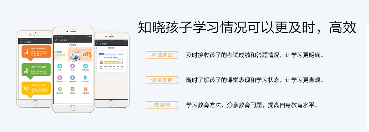 家長可在(小優(yōu)智校)手機(jī)端實(shí)時收到推送的孩子進(jìn)出校門的情況 / 上課表現(xiàn)情況 / 考試成績分析 / 學(xué)校內(nèi)實(shí)時監(jiān)控畫面 / 課后作業(yè)通知 /學(xué)生在校消費(fèi)情況 / 在線為孩子及時充值 / 孩子宿舍考勤情況 / 宿舍管理情況 /學(xué)生請假等,充分提供給家長一個更加全面的學(xué)生在校報告。為家校共同教育提供堅(jiān)實(shí)基礎(chǔ)