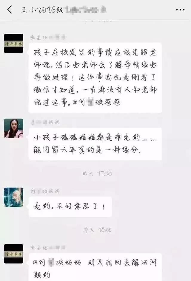 可被害者家長卻表示**次聽說此事,并表示要加微信溝通解決。